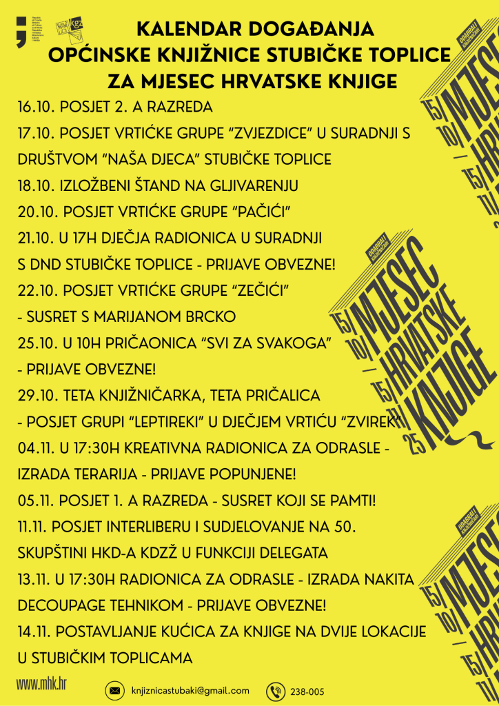 Kalendar događanja za Mjesec hrvatske knjige